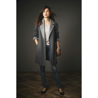 - レディース > ジャケット・アウター > アンタイトル❤︎ノーカラー ラップコート ガウンコート ロングコート グレー アンタイトル ノーカラー ラップコート ガウンコート ロングコート
